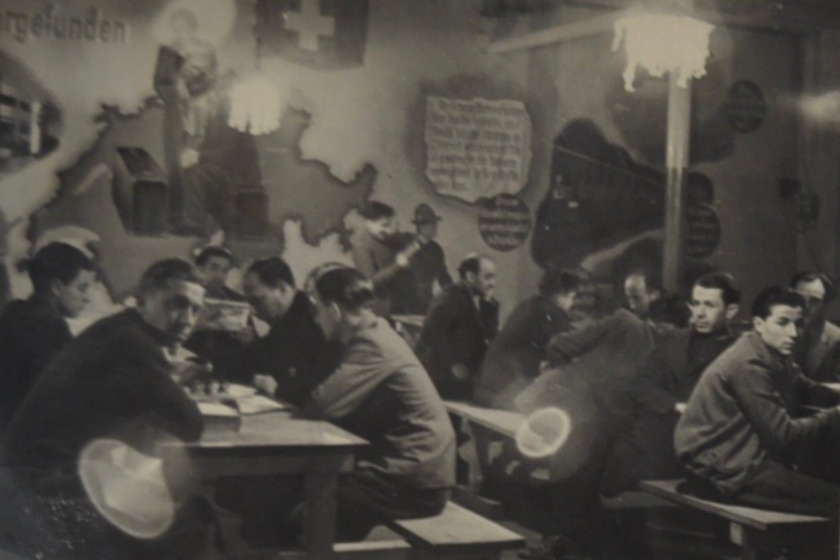 Abb. 3: Aufenthaltsraum für Geflüchtete im Auffanglager Diepoldsau, Diepoldsau, St. Gallen, 1938; Jüdisches Museum der Schweiz, JMS 930-1. CC BY-SA 4.0, via Wikimedia Commons.