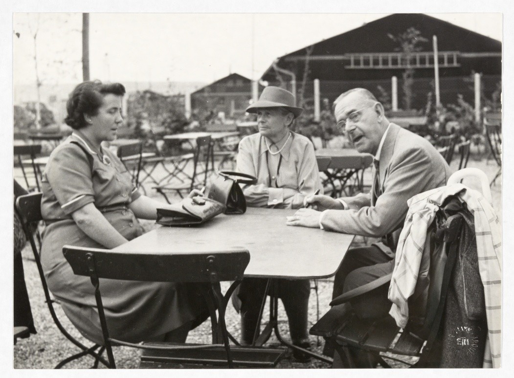 Abb. 5: Emmie Oprecht, Katia Mann und Thomas Mann am Flughafen Kloten bei Zürich, 1950; ETH-Bibliothek Zürich, Thomas-Mann-Archiv / Fotograf: Unbekannt / TMA_3385.