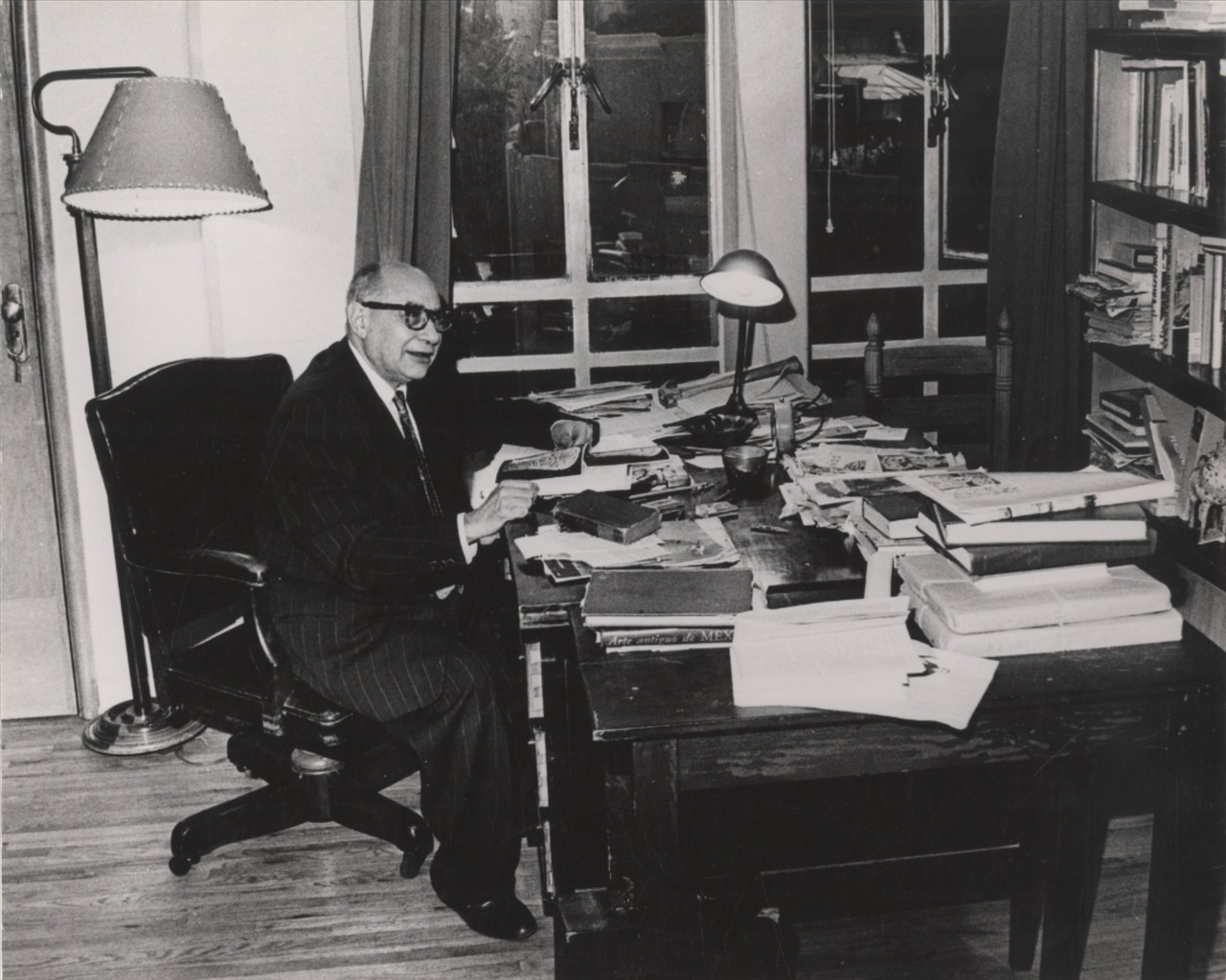 Abb. 1: Westheim in seinem Arbeitszimmer in Mexiko-Stadt zu Beginn der 1960er Jahre, Akademie der Künste, Berlin, Paul-Westheim-Archiv, Nr. 185.