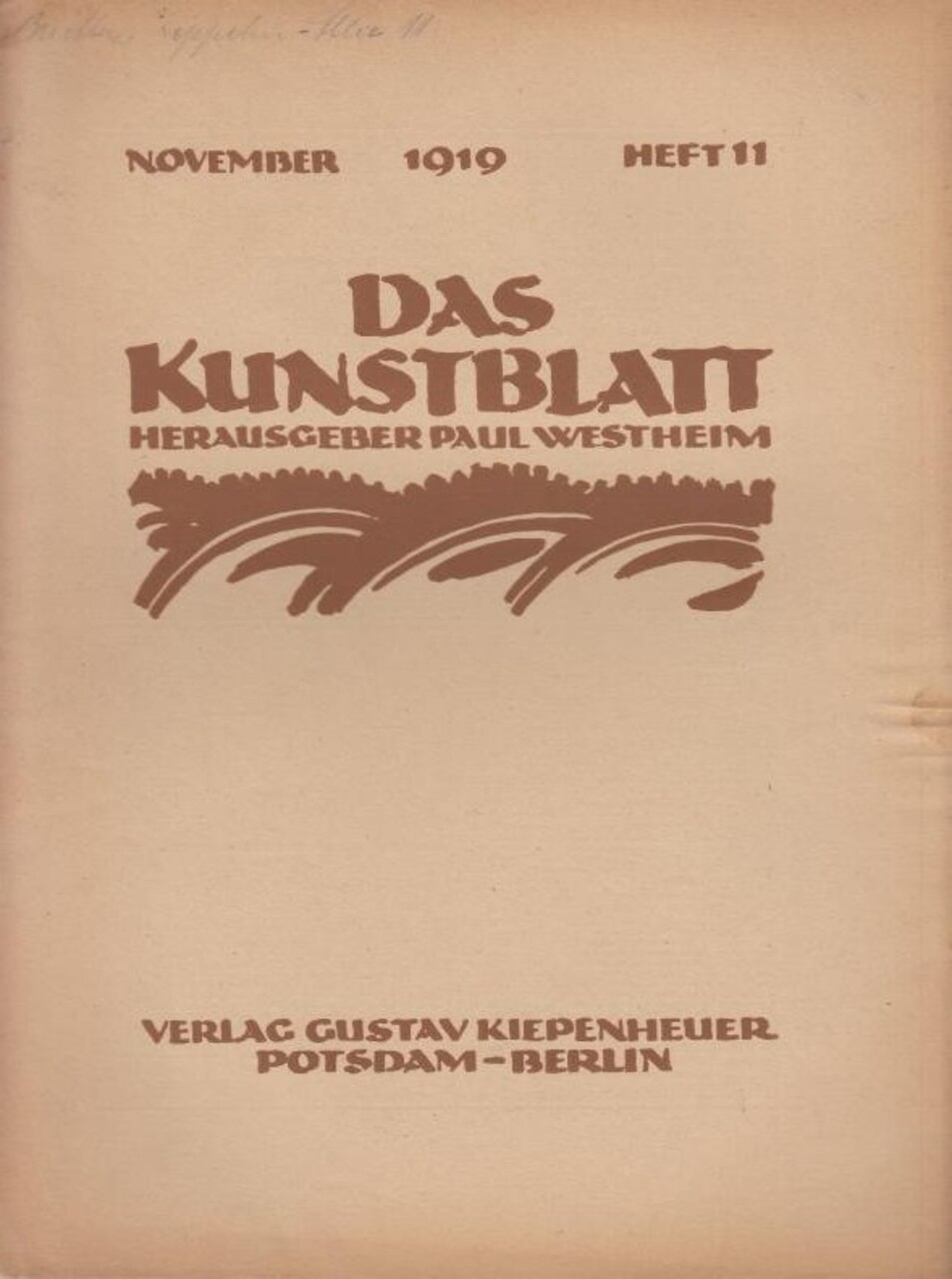 Abb. 2: Das von Paul Westheim herausgegebene Kunstblatt. Monatsschrift für künstlerische Entwicklung in Malerei, Skulptur, Architektur und Kunsthandwerk, November 1919, Heft 11; Public Domain, Wikimedia Commons.