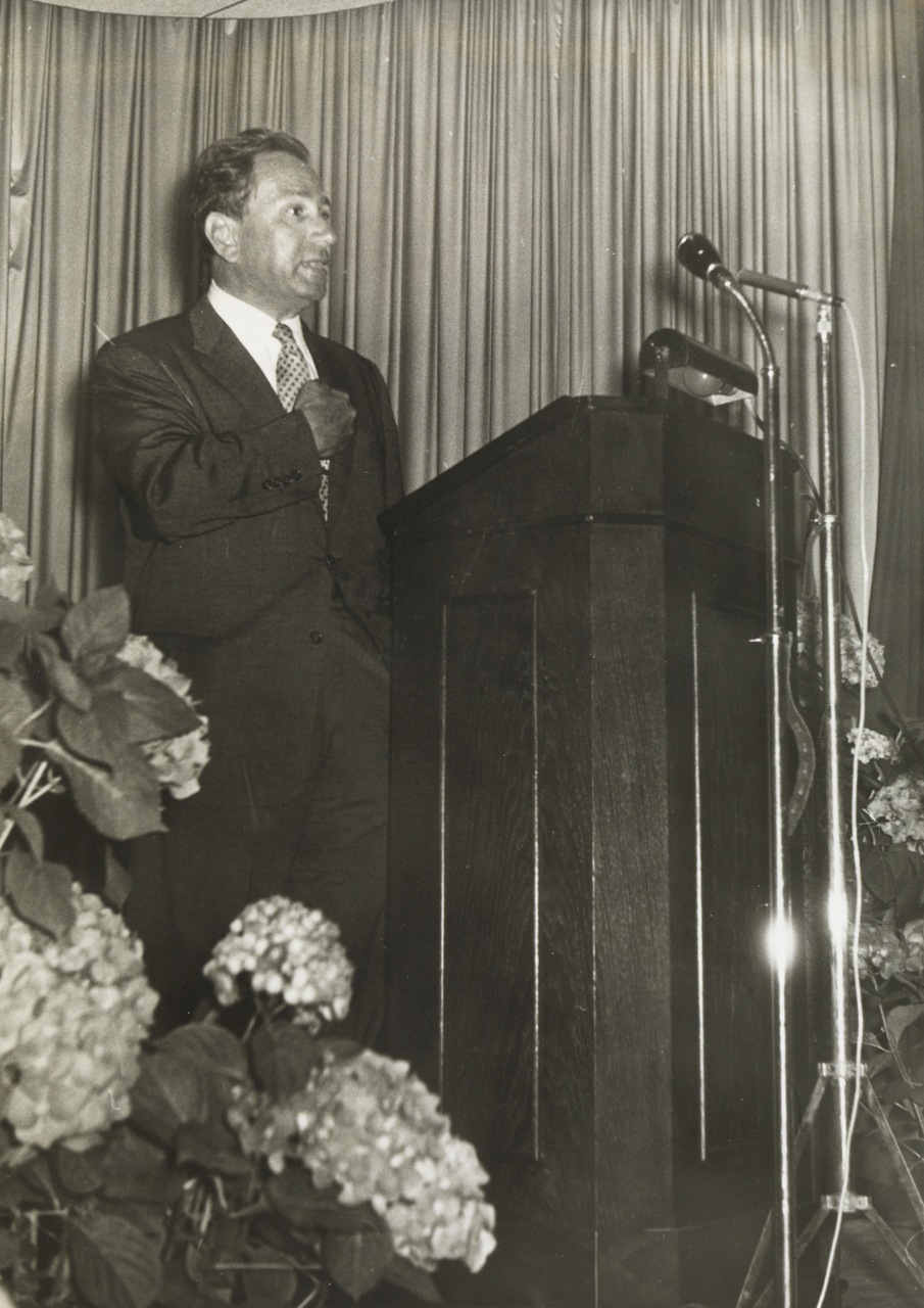 Abb. 5: Joachim Prinz am Rednerpult bei einer Veranstaltung der Jüdischen Gemeinde Berlin, Berlin ca. 1964; Jüdisches Museum Berlin, Inv.-Nr. 2003/121/65, Schenkung von Hannelore Mintscheff.