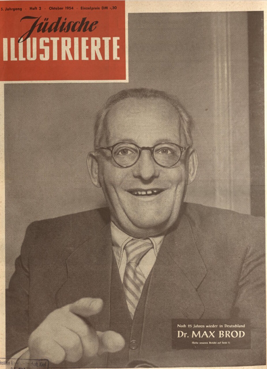 Abb. 5: „Nach 25 Jahren wieder in Deutschland. Dr. Max Brod“, Titelbild der Jüdischen Illustrierten, Beilage zur Allgemeinen Wochenzeitung der Juden in Deutschland, 1954.