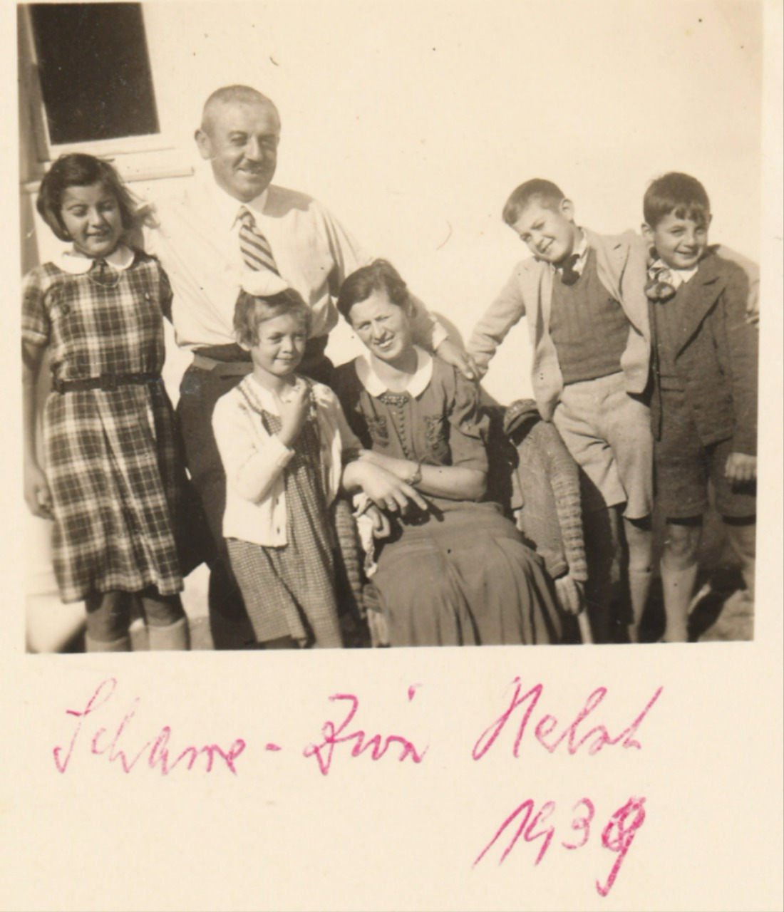 Abb. 1: Familie Fröhlich im Herbst 1939, kurz nach ihrer Ankunft in Shavei Zion, von links nach rechts: Schwester Sonja (Noemi) (1926–1948), Vater Julius (1896–1963), Schwester Eleonora (Esther) (1932–2019), Mutter Elise (1905–2000), Bruder Helmut (Elkana) (1927–1992) und Walter (Amos) Fröhlich; Privatarchiv Amos Fröhlich, Shavei Zion, Israel.