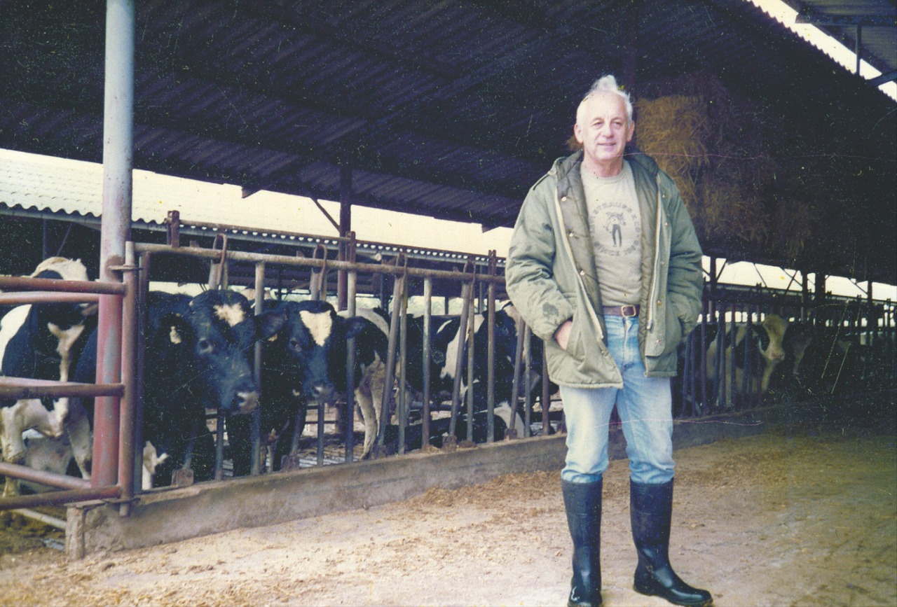 Abb. 3: Amos Fröhlich im Kuhstall von Shavei Zion, undatiert (vor 2001); Privatarchiv Amos Fröhlich, Shavei Zion, Israel.